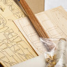 Boite comprenant des tonneaux, des baquets et les pièces découpées au laser pour assembler les canots de sauvetage.