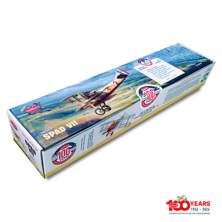 Fabriqué aux États-Unis, ce kit Guillow’s SPAD VII convient aux maquettistes dès 14 ans, qu’ils souhaitent exposer leur modèle ou le faire voler en vol libre. Quelques outils de base (colle, peinture, cutter, papier de verre, épingles) sont nécessaires mais non inclus.