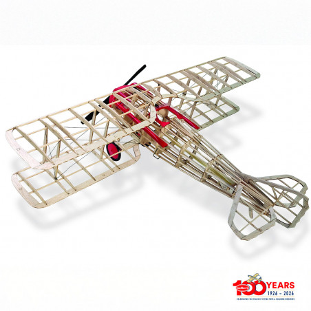 Ce kit à construire en bois balsa à l’échelle 1/17 (envergure 46 cm) est idéal pour les débutants. Il offre plus de 20 heures de montage et comprend toutes les pièces nécessaires : éléments en bois découpés au laser, plans détaillés, décalcomanies, pièces plastiques moulées, hélice, moteur à élastique FAI Tan et revêtement en papier de soie.