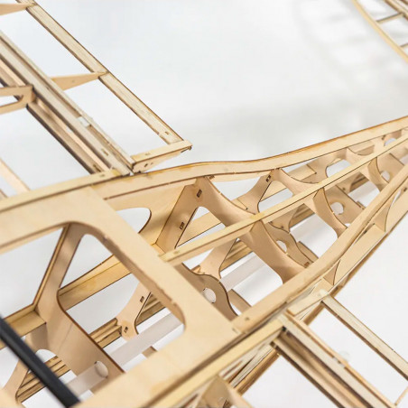 Pour que la construction reste agréable, DW HOBBY ajoute une paire de roues à l’échelle, des haubans d’ailes en aluminium pré-cintrés et percés, des tubes carbone pour les longerons, ainsi qu’un pack matériel complet contenant tout l’accastillage nécessaire. Vous assemblez ainsi un modèle fidèle, léger, et étonnamment robuste.