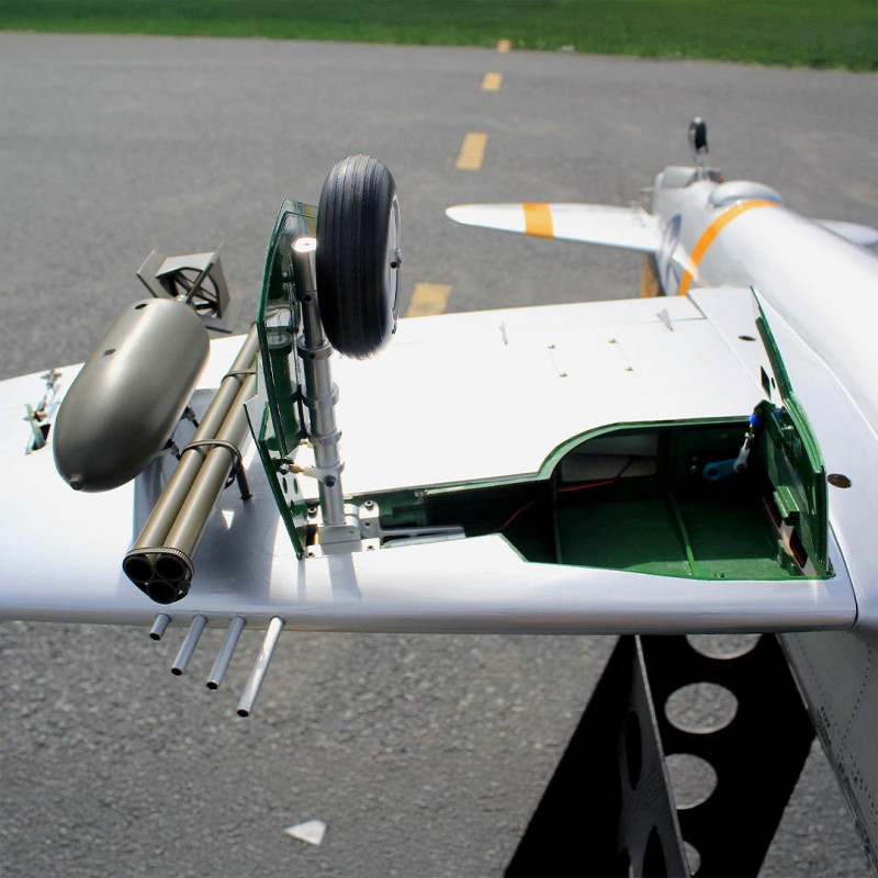 • Kit de cockpit inclus ainsi que le faux moteur en étoile, les trappes de train et le capot moteur en fibre de verre, les fûts de canons en métal et l'antenne amovible.