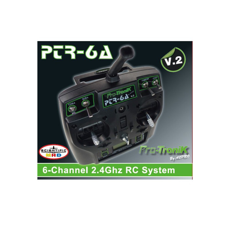Dans cette version Combo le modèle est livré avec l’accu de propulsion préconisé 3 éléments 2200 mA (Réf Z03L9220330 BLACKLITHIUM) et son chargeur PROTRONIK (S0397723), la radiocommande PROTRONIK PT6 avec accu NimH.