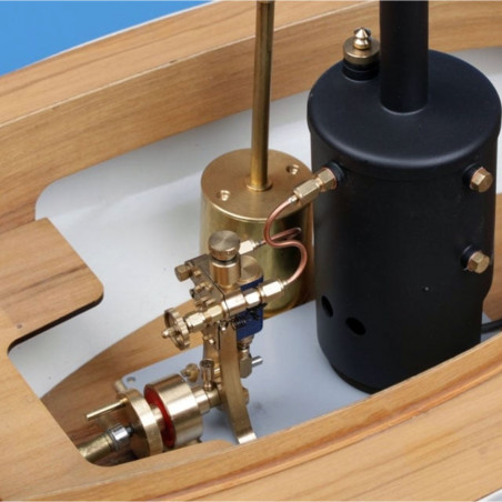 La machine à vapeur "Anna" est un moteur monocylindre à simple action avec une chaudière en laiton chauffée à l’alcool sec (Esbit). Ce moteur visuellement attrayant offre des performances étonnantes. Il n’est pas possible de contrôler la machine à vapeur à distance. Le bateau est uniquement contrôlé au gouvernail.