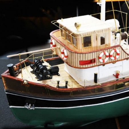 Elle allie le charme des remorqueurs à vapeur des années 30, une construction en bois traditionnelle, et la possibilité de l’équiper en RC ou vapeur réelle.