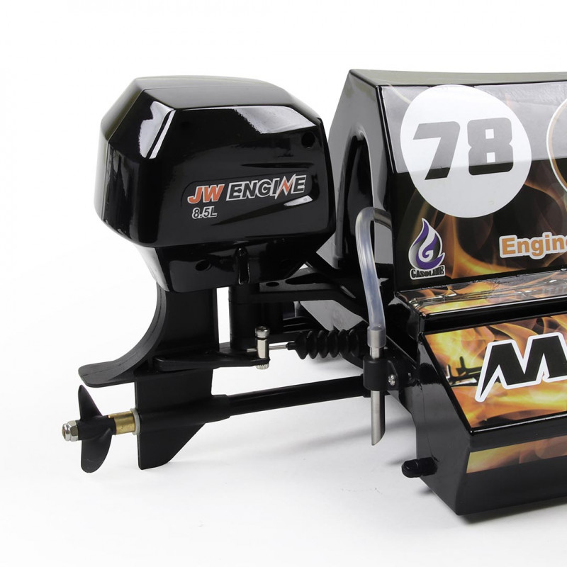 Le MAD FLOW Brushless est livré tout équipé dans cette version avec un puissant moteur électrique Brushless et un variateur Brushless 30A refroidis par circuit d’eau, d’un puissant servo de direction de 9g étanche à l’eau (WaterProof), d’un gouvernail et une transmission par flexible.