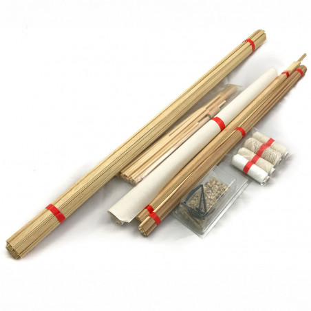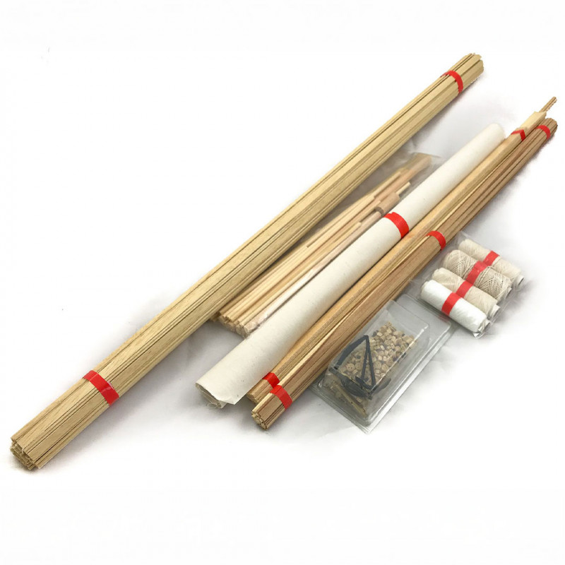 Le kit comprend une coque et une ossature en bois découpées au laser, des lattes, les accastillages (rouleaux, poulies, ancrages, etc.), les mâts et espars, les cordages de gréement, ainsi que le plan détaillé et la notice de montage.