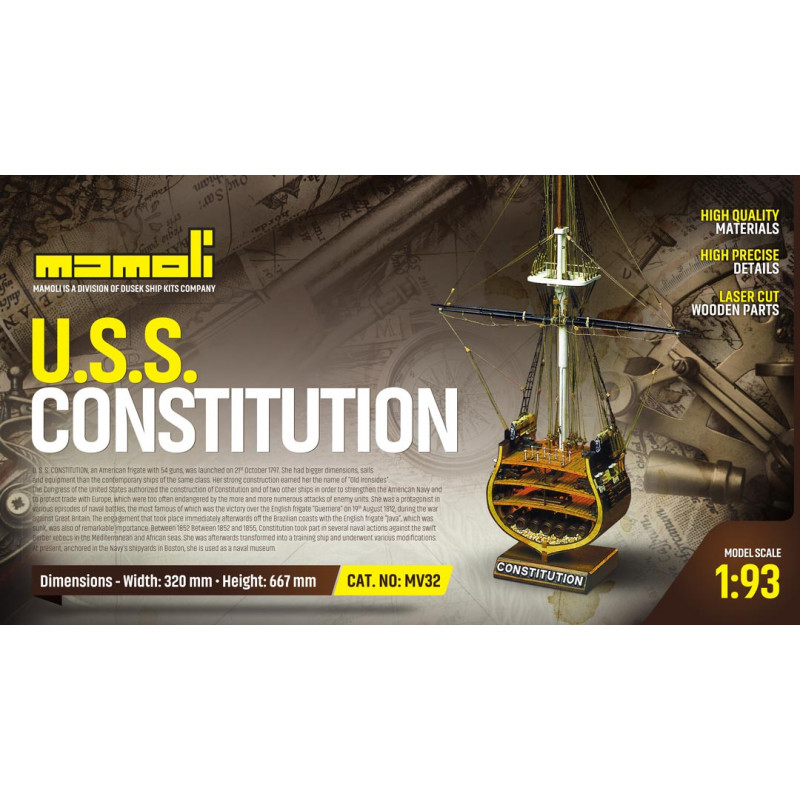 Bateau statique Coupe U.S.S. Constitution 1/93