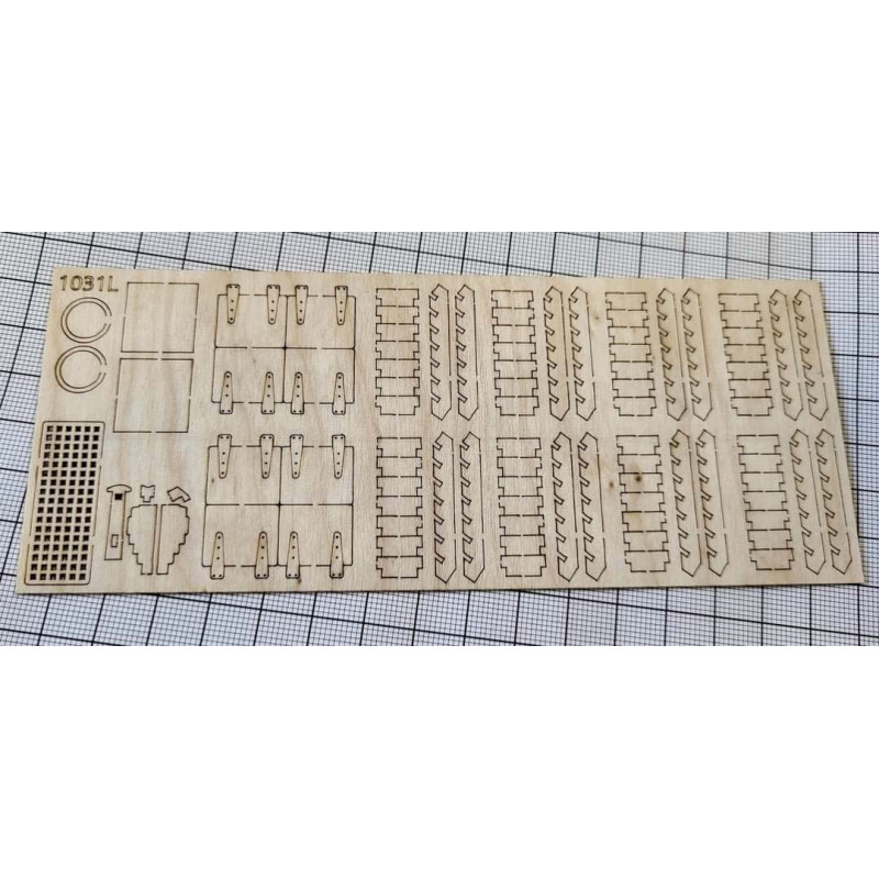 Une nouvelle planche de pièces en bois découpées au laser, avec un niveau de détail supérieur.