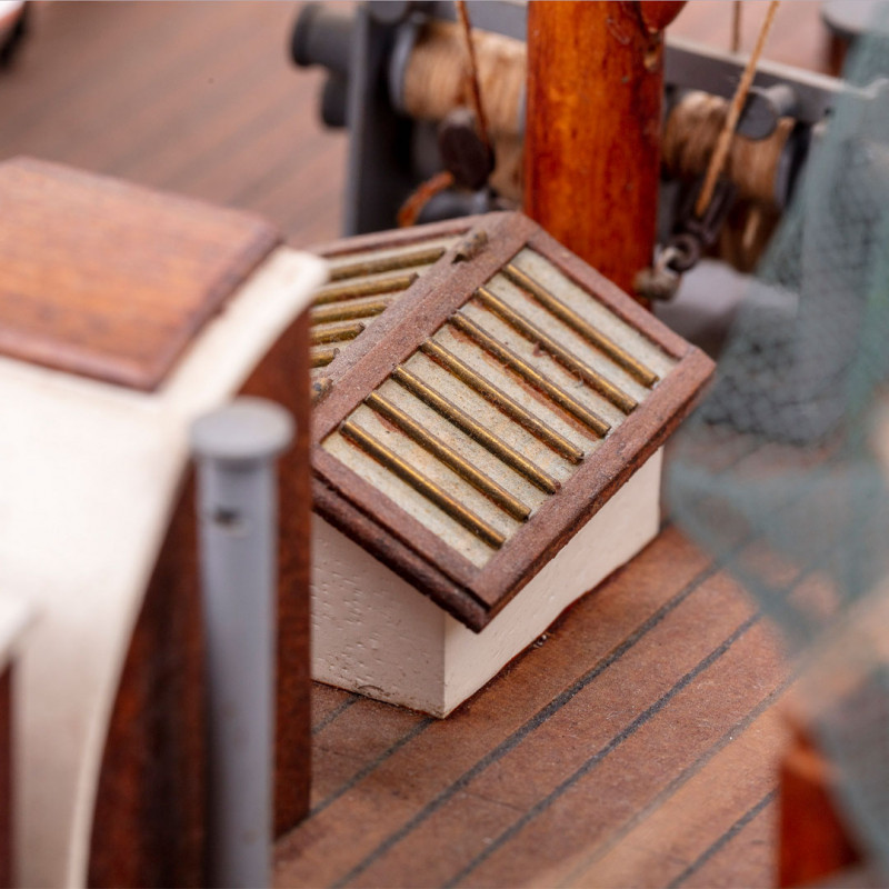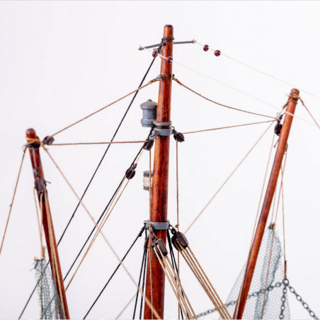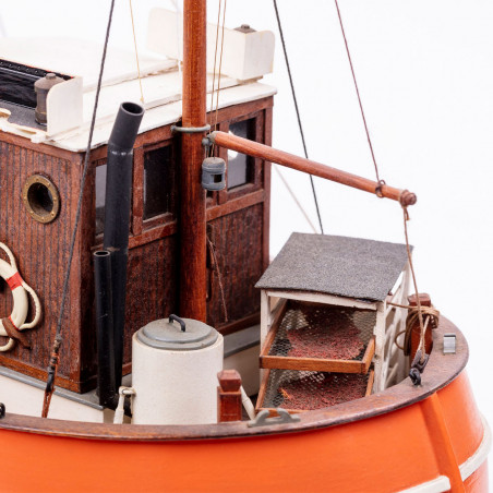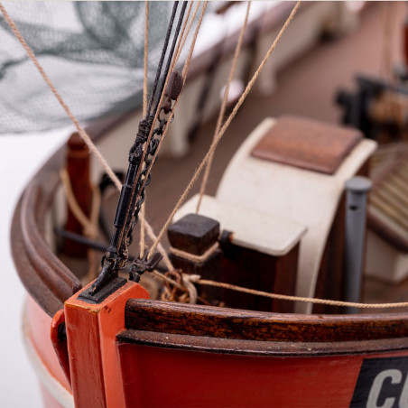 Chaque pièce est finement découpée pour un ajustement parfait et une finition de qualité. Le kit comprend tous les éléments structurels nécessaires, les détails de pont, les accessoires de pêche, ainsi que les mâts et cordages typiques de ces navires.