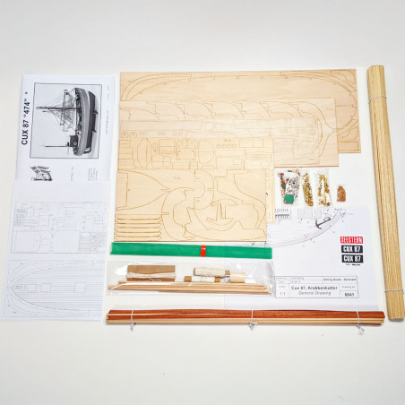 La maquette Krabbenkutter Cux 87 est conçue pour une construction traditionnelle tout bois, selon la méthode par couples et lisses.
