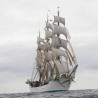 Ce grand voilier possède une coque en acier et une impressionnante voilure de trois-mâts carrés, lui permettant de naviguer dans toutes les mers du monde.