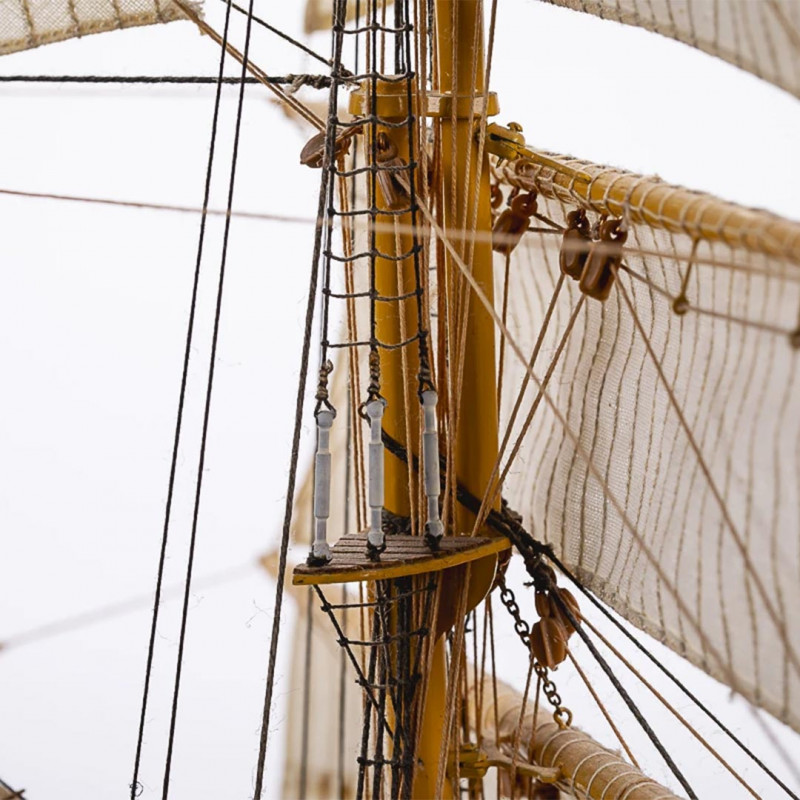 La construction tout en bois offre une expérience authentique et immersive, permettant à chaque modéliste de redonner vie à ce monument de la navigation. Les pièces d’accastillage sont incluses, tout comme une notice de montage détaillée et illustrée, qui guide pas à pas dans l’assemblage des différentes parties du voilier.