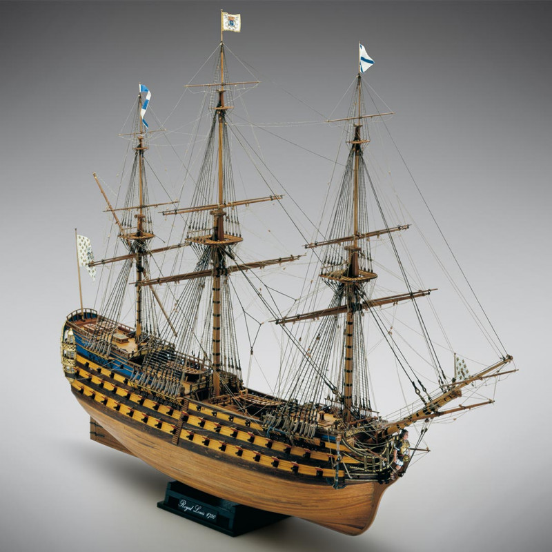Vaisseau français de 1er rang de 1780 Le Royal Louis était l'un vaisseau des plus puissants vaisseaux de premier rang dont la Marine Royale Française disposait à cette époque. Notre modèle représente le Royal Louis selon les plans de 1779 quand il fut vaisseau amiral de l'Escadre blanche-bleue.