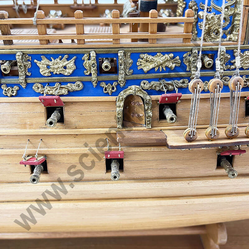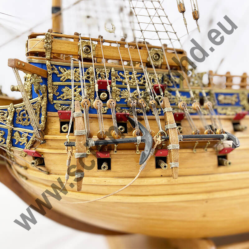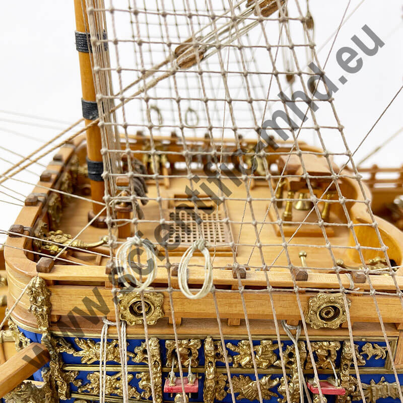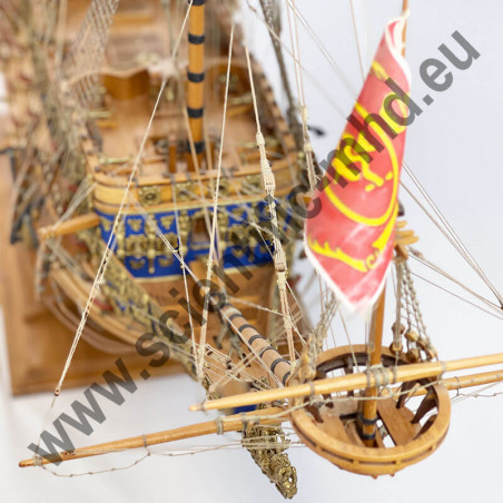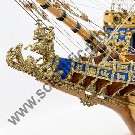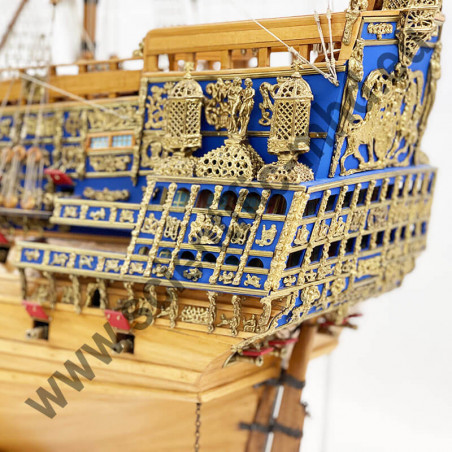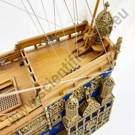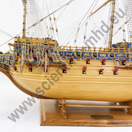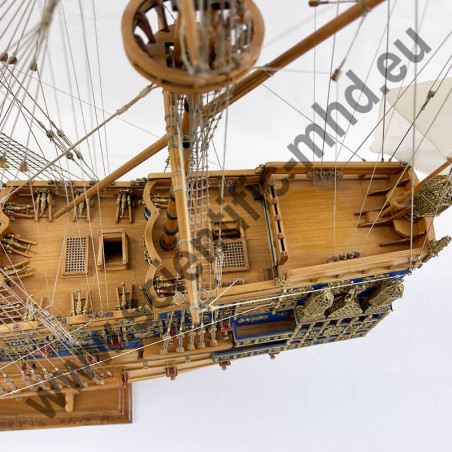 Le modèle fabriqué par Sergal est une reproduction unique et très fidèle. Construction par quille, couples et double bordé, pièces découpées au laser pour un ajustement parfait des pièces. Sa très belle superstructure comporte plus de 700 pièces d'accastillage moulées en bronze et 102 canons moulés, caps de mouton et poulies en bois, drapeaux en soie imprimée. Plans de construction détaillés en 7 feuillets.