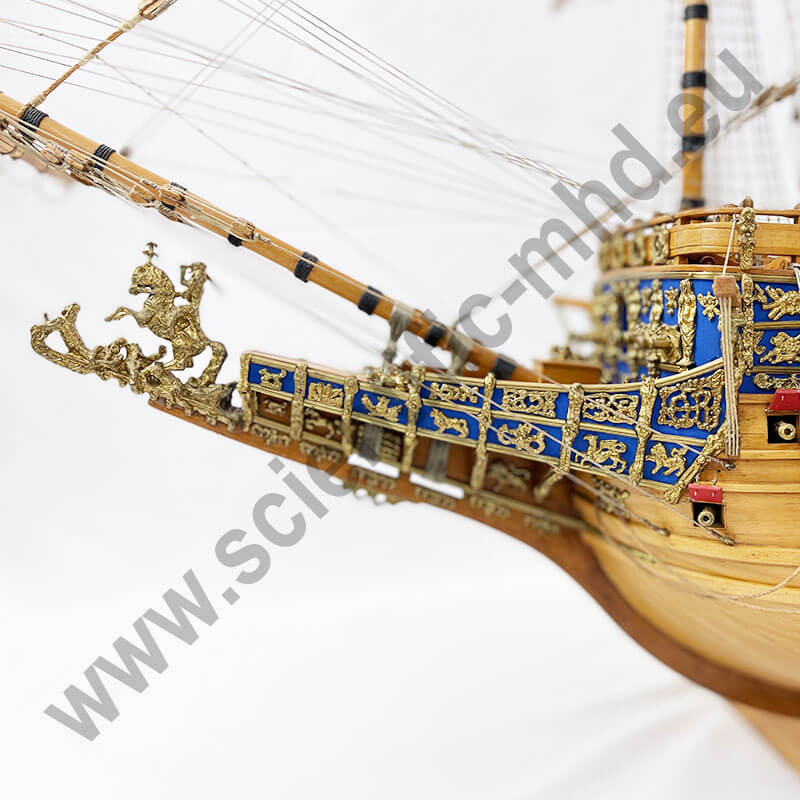 Signification symbolique : Le Sovereign of the Seas n'était pas seulement un navire de guerre fonctionnel, il servait également à projeter le pouvoir et le prestige de la couronne anglaise. Les décorations somptueuses et les détails élaborés témoignaient de la grandeur et du raffinement de la monarchie. Il possédait certainement l'un des châteaux arrière les plus richement décorés de son époque.