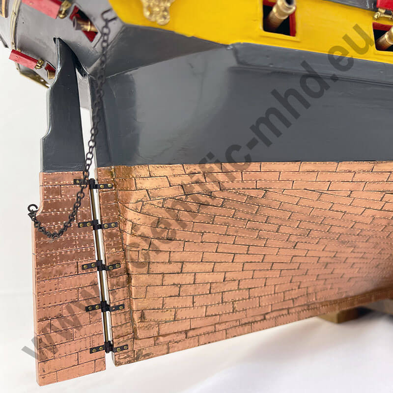 Les plaques imitation cuivre rectangulaires sont incluses pour vous permettre de construire la coque de la maquette telle qu'elle était protégée en tant de guerre.