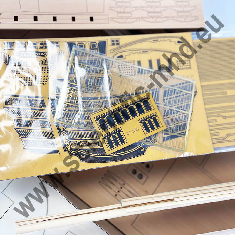 Cette maquette du H.M.S. Victory peut être assemblée sans ou avec les voiles, disponibles en option sous la référence S06834025.