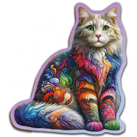 Découvrez le Chat Arc-en-Ciel Rêveur 150 Puzzle Bois Animaux, une expérience fascinante qui donne vie à un chat éclatant de couleurs arc-en-ciel.