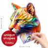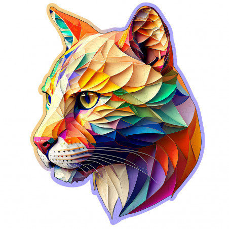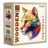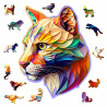 Le Puzzle Bois 150 Cougar Arc-en-Ciel Rêveur met en avant un fauve rayonnant habillé de teintes arc-en-ciel vibrantes.