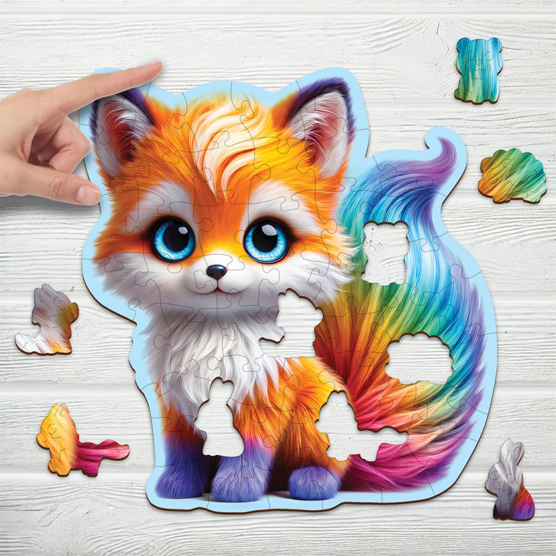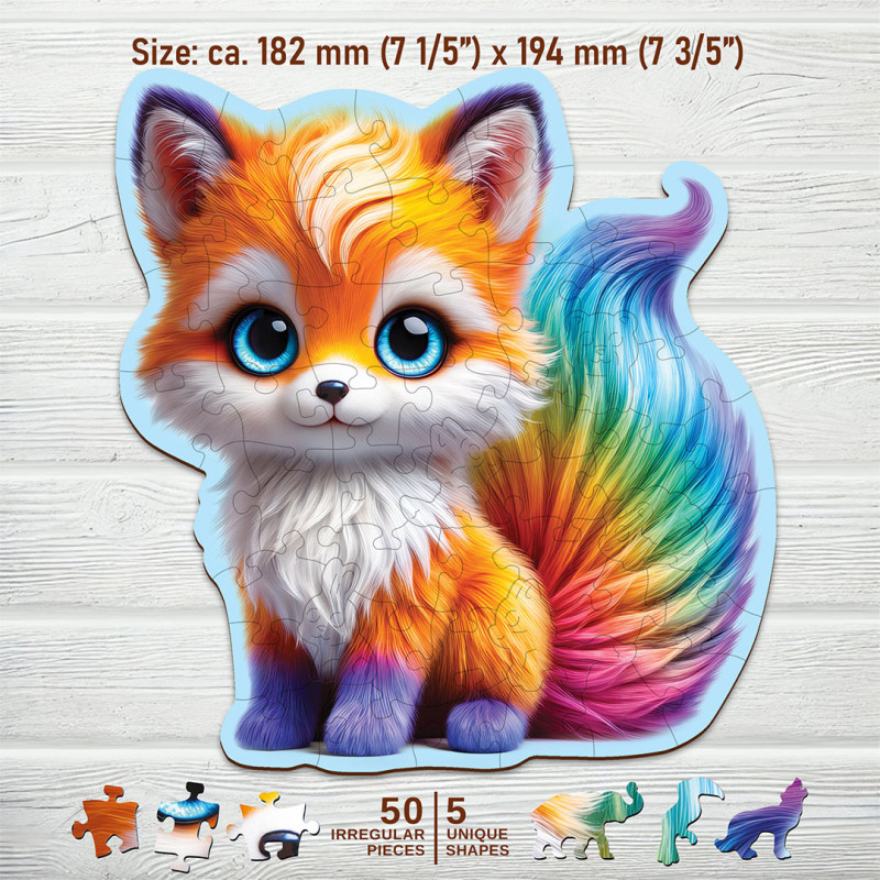 Découvrez Cute Fox 50 Puzzle Bois Animaux, une expérience fascinante qui donne vie à un renard éclatant de couleurs arc-en-ciel.
