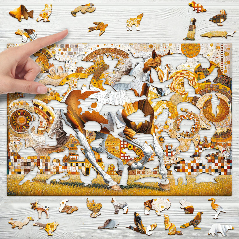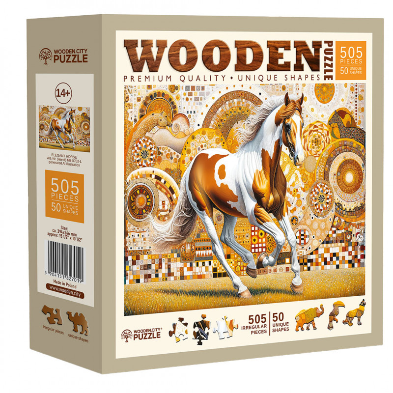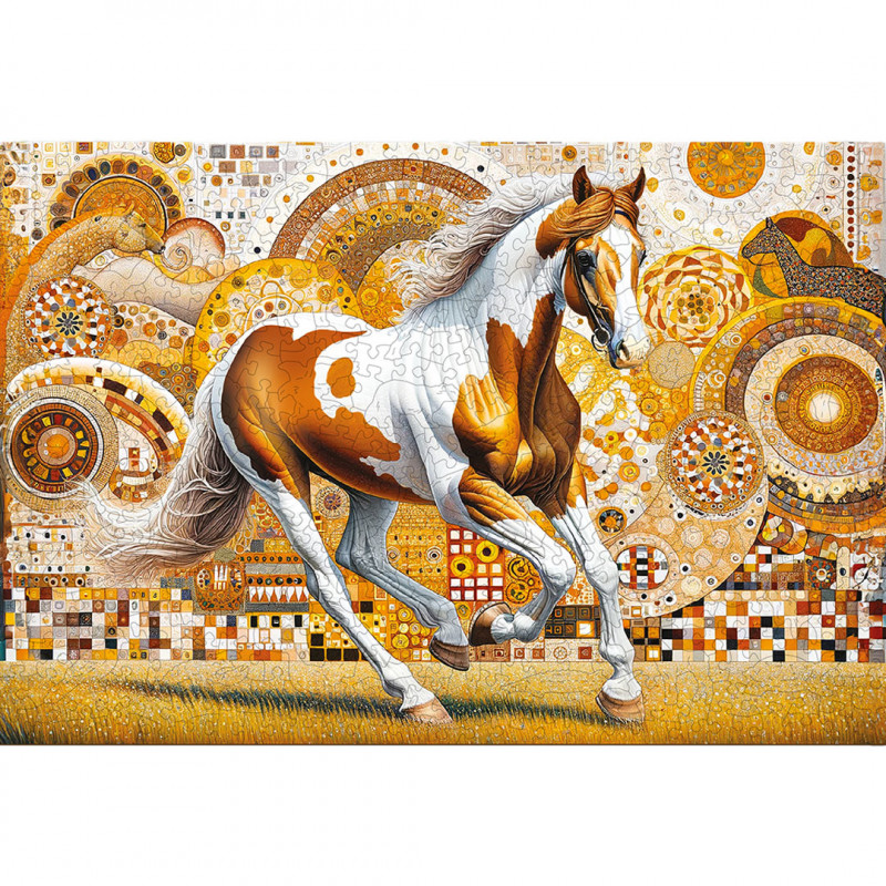 Découvrez le puzzle en bois 500 pièces Elegant Horse, un Jigsaw puzzle d’une grande élégance mettant en scène un cheval brun et blanc majestueux sur un fond de motifs raffinés aux teintes chaudes. Ce puzzle pour enfants dès 10 ans et pour adultes allie la beauté de la nature à l’art du design, offrant un moment de détente créatif et inspirant.