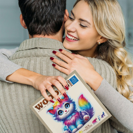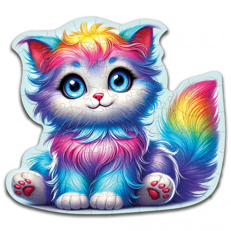 Découvrez Fantasy Kitty 75 Puzzle Bois Animaux, une expérience fascinante qui donne vie à un chat éclatant de couleurs arc-en-ciel.