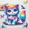 Le Puzzle Bois 75 Chat Fantasy Kitty met en avant un félin rayonnant habillé de teintes arc-en-ciel vibrantes.