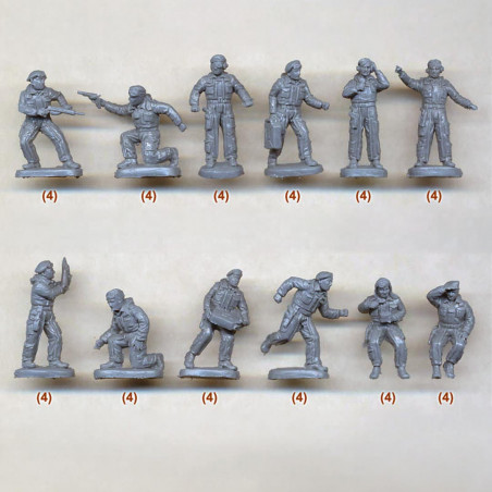Les boîtes contiennent généralement plusieurs dizaines de figurines avec différentes poses (combat, marche, tir, commandement), ce qui favorise la création de scènes réalistes.