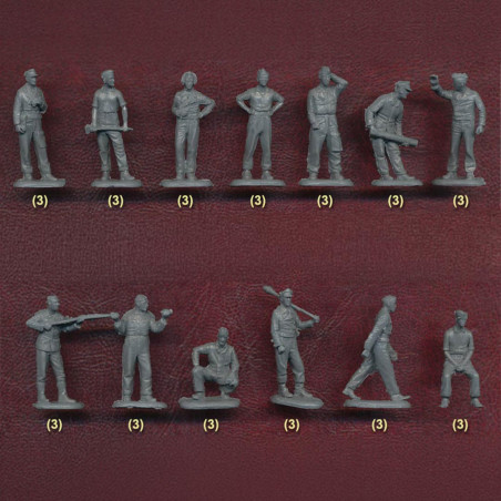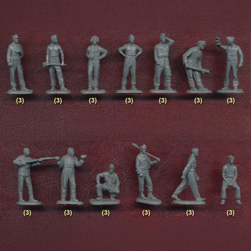 Les boîtes contiennent généralement plusieurs dizaines de figurines avec différentes poses (combat, marche, tir, commandement), ce qui favorise la création de scènes réalistes.