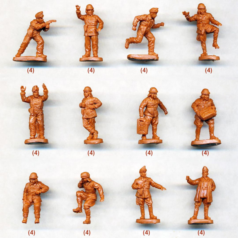 Les boîtes contiennent généralement plusieurs dizaines de figurines avec différentes poses (combat, marche, tir, commandement), ce qui favorise la création de scènes réalistes.