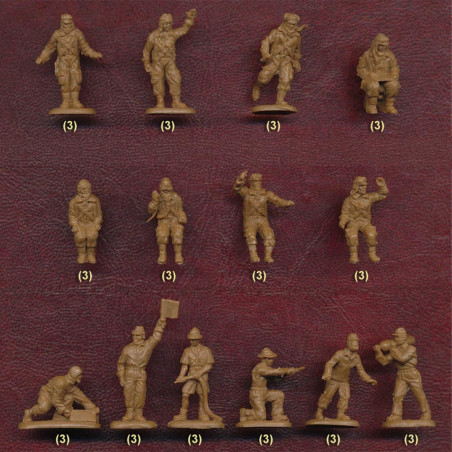 Les boîtes contiennent généralement plusieurs dizaines de figurines avec des poses variées, offrant un bon rendu visuel pour les dioramas ou les jeux de stratégie.