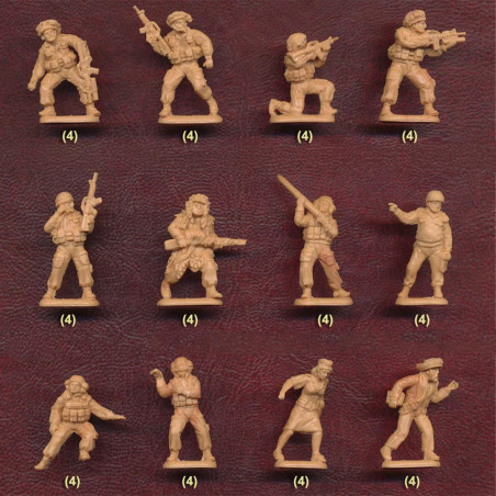 Les boîtes contiennent généralement plusieurs dizaines de figurines avec différentes poses (combat, marche, tir, commandement), ce qui favorise la création de scènes réalistes.