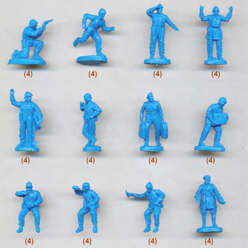 Les boîtes contiennent généralement plusieurs dizaines de figurines avec différentes poses (combat, marche, tir, commandement), ce qui favorise la création de scènes réalistes.
