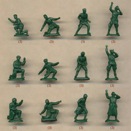 Les boîtes contiennent généralement plusieurs dizaines de figurines avec différentes poses (combat, marche, tir, commandement), ce qui favorise la création de scènes réalistes.