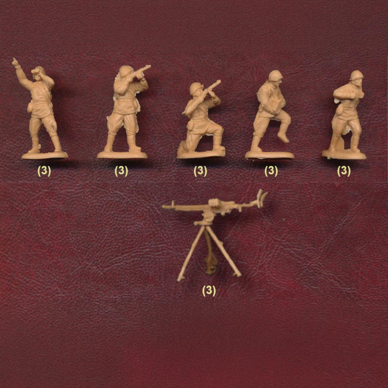 Boite contenant 15 figurines, 5 poses différentes et 3 mitrailleuses
