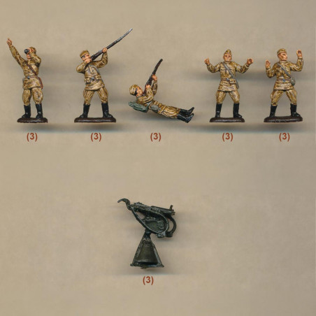 Boite contenant 15 figurines, 5 poses différentes et 3 mitrailleuses