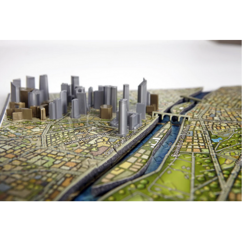 Si la base des puzzles est bien une base 2D traditionnelle qui forme le tracé des routes et positionne les monuments de la ville, l’étape finale du processus de construction consiste à placer pièce par pièce, de façon chronologique selon l’année de construction la reproduction en modèles réduits tous les bâtiments emblématiques et les grattes ciels de chaque ville.