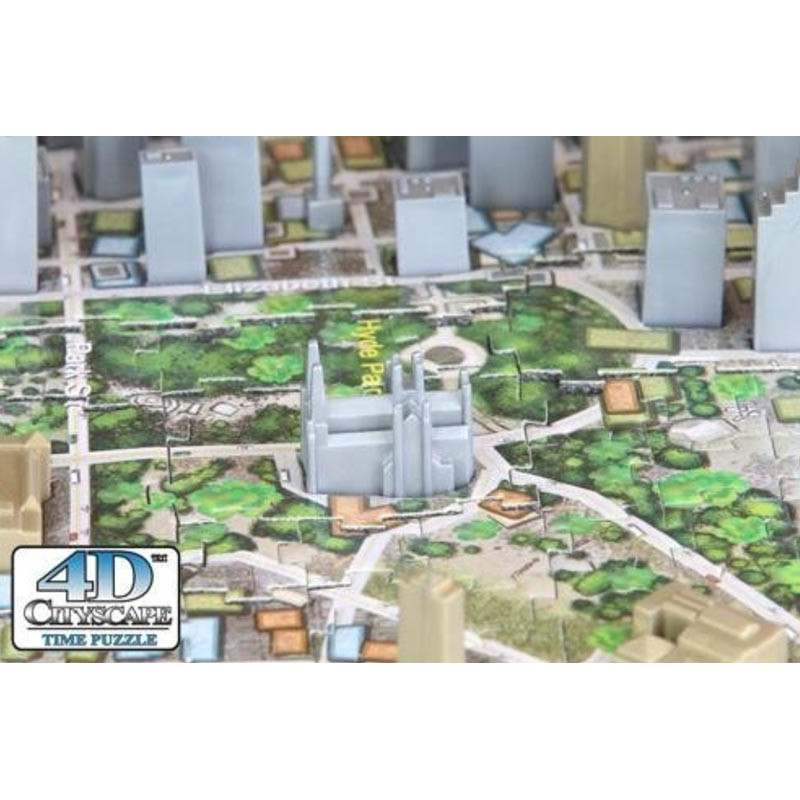 Si la base des puzzles est bien une base 2D traditionnelle qui forme le tracé des routes et positionne les monuments de la ville, l’étape finale du processus de construction consiste à placer pièce par pièce, de façon chronologique selon l’année de construction la reproduction en modèles réduits tous les bâtiments emblématiques et les grattes ciels de chaque ville. Une affiche est présente dans chaque puzzle pour expliquer et dénommer chaque monument reproduit, sa date de construction et son histoire.
