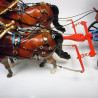 Le kit d’attelage est composé d’éléments de haute qualité moulés en étain, des ferrures en laiton, les sangles sont en imitation cuir.
