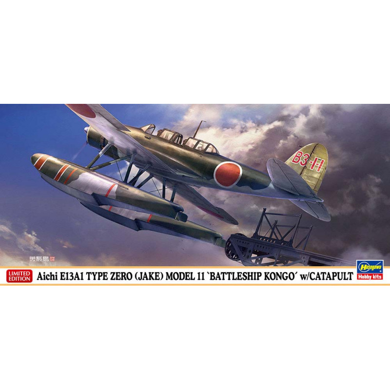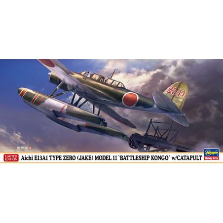 Plus de details En stock, disponible immédiatementMaquette d’avion en plastique Aichi E13A1 Type Zero (Jake) Modèle 11 « Battleship Kongo » avec catapulte 1:72