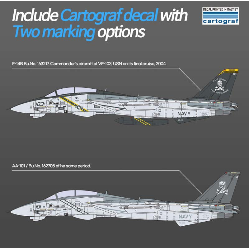 Plus de details En stock, disponible immédiatementMaquette d’avion en plastique USN F-14B « VF-103 Jolly Rogers » 1:72