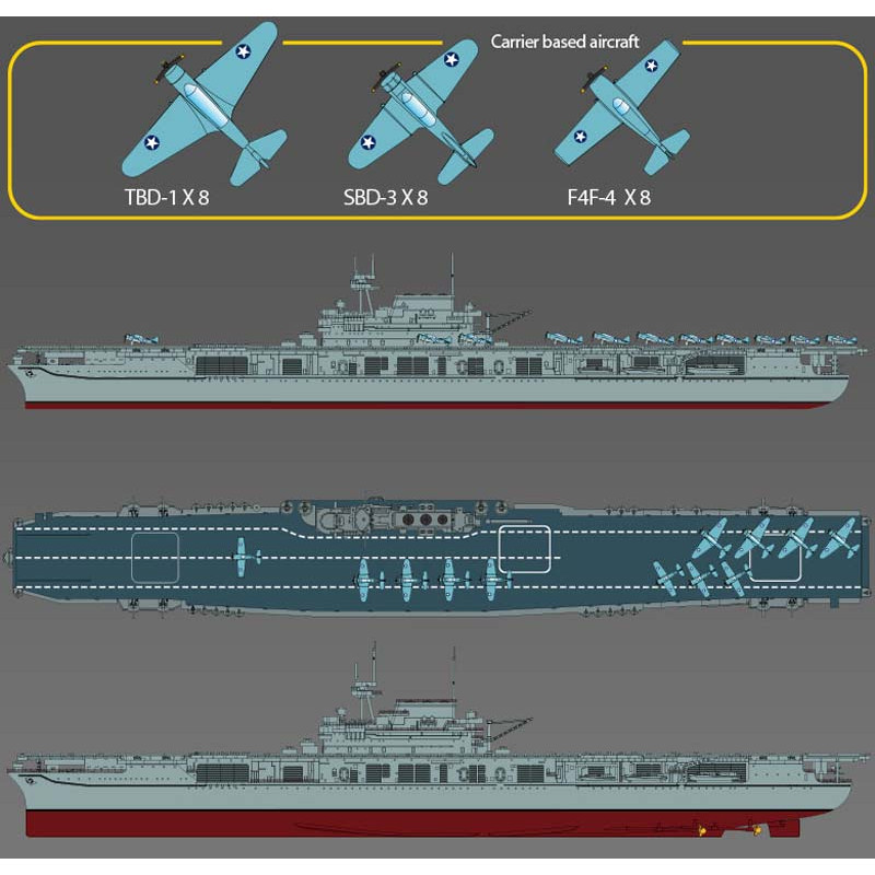 Plus de details En stock, disponible immédiatementMaquette de bateau en plastique USS CV-6 Enterprise « Battle of Midway » 1:700