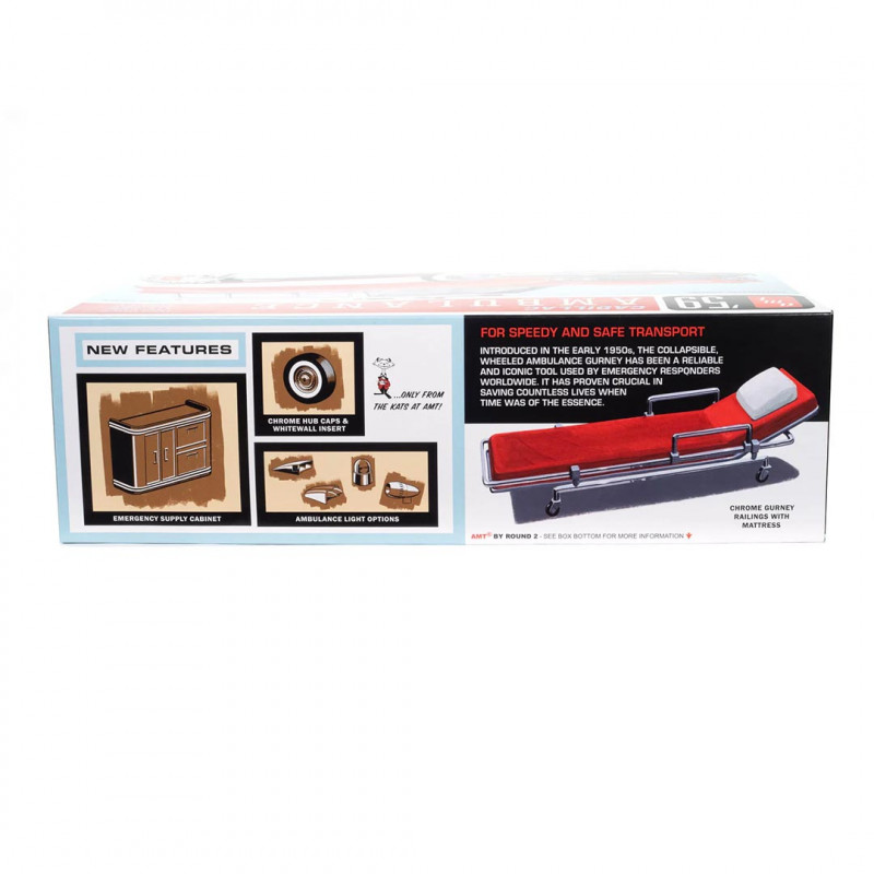 Plus de details En stock, disponible immédiatementMaquette de voiture en plastique Cadillac Ambulance 1959 avec brancard 1:25