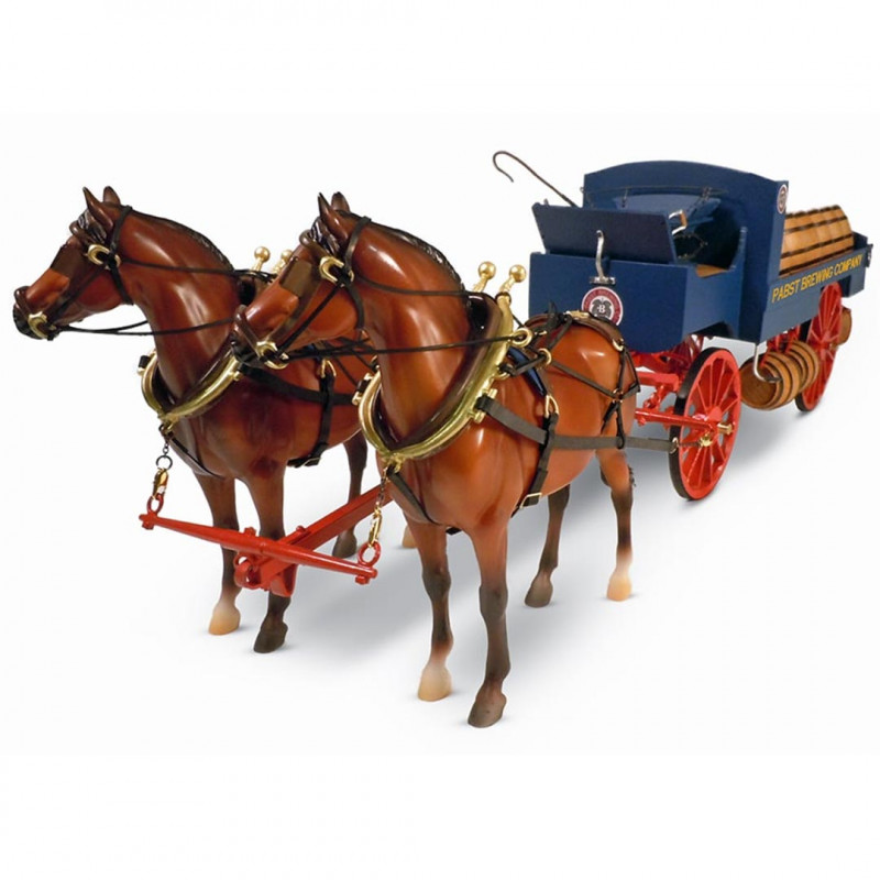 Voici un kit de chariot à bière comprenant deux magnifiques chevaux Breyer à l'échelle 1:12.