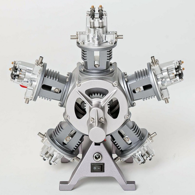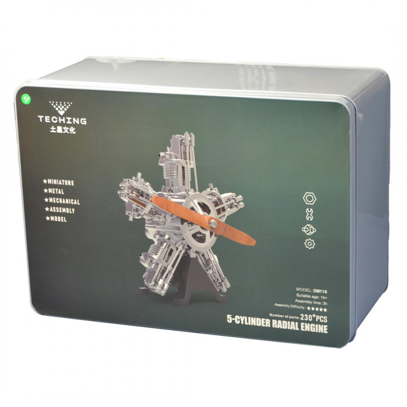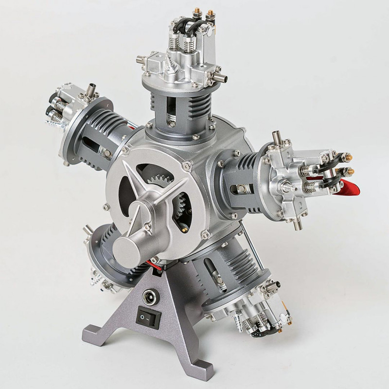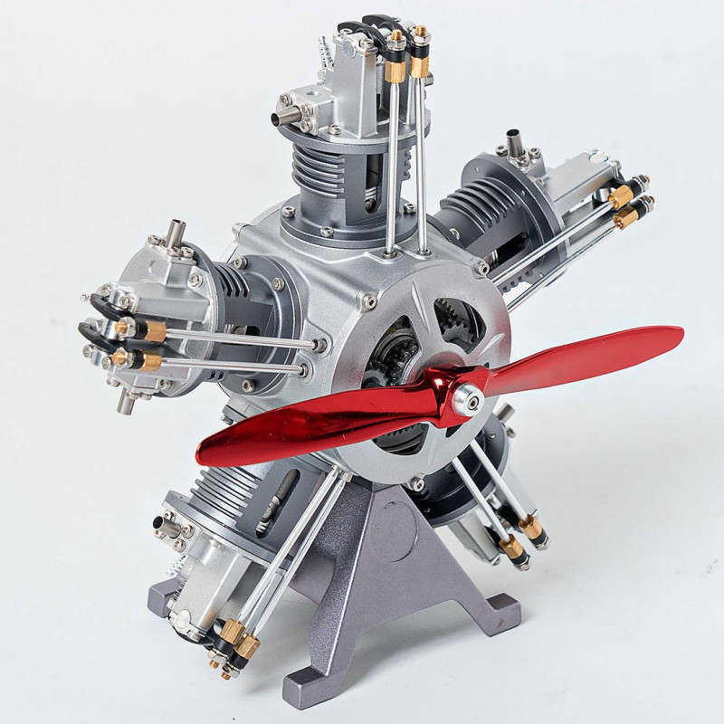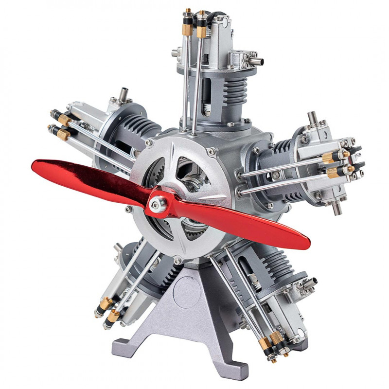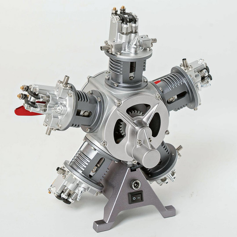 Un moteur électrique intégré dans le carter de démarrage anime cette maquette en métal. Grâce à des fenêtres d’observation, vous pouvez suivre le mouvement du vilebrequin, des pistons et des bielles, et admirer en direct le fonctionnement de cette reproduction mécanique. Cette maquette en métal à monter ne se limite pas à l’esthétique : c’est un modèle dynamique et vivant, qui reproduit fidèlement un moteur radial 5 cylindres en action.