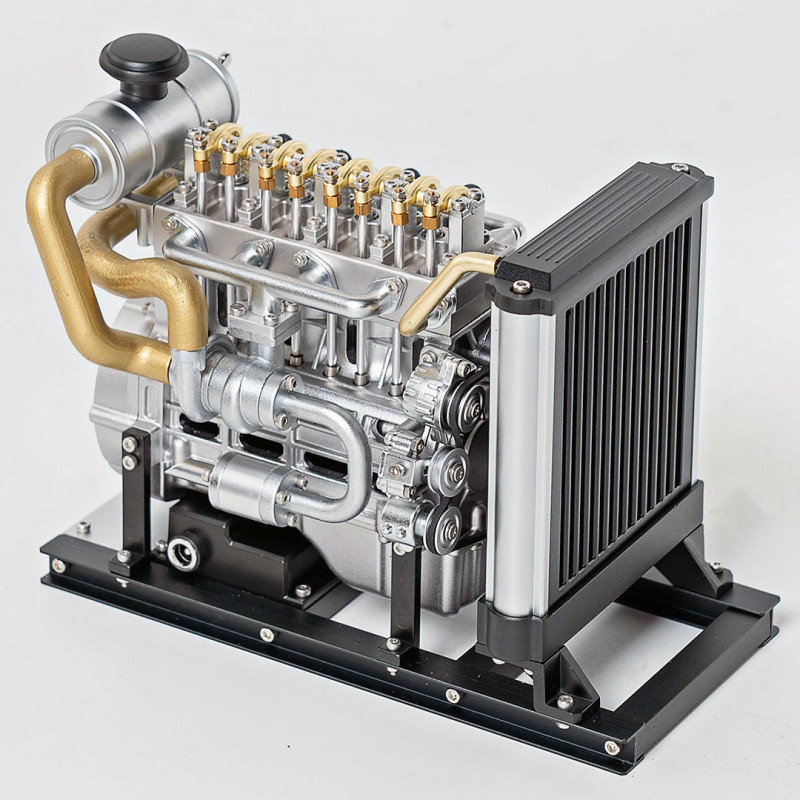 Ce mini moteur diesel 4 cylindres en ligne à soupapes en tête (OHV) séduit par son design soigné et ses pièces en métal de haute qualité. Chaque composant est conçu avec un réalisme remarquable, faisant de cette maquette en métal à monter une véritable introduction au monde de l’ingénierie mécanique, dans un format aussi esthétique que technique.