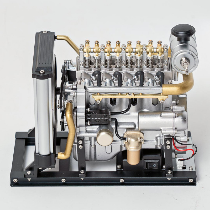 Ce moteur miniature fonctionnel peut être alimenté par un moteur électrique intégré, offrant une expérience réaliste et immersive. Le fonctionnement du moteur est visible pendant tout le cycle d’animation, transformant cette maquette en métal en une reproduction exacte en métal dynamique. À la fois objet décoratif et modèle mécanique simulé, il reproduit avec fidélité le comportement d’un vrai moteur thermique.