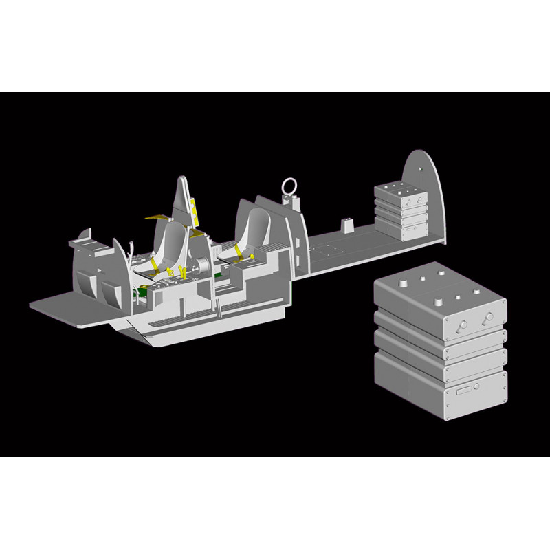 4. Cockpit Détaillé : L'une des parties les plus impressionnantes de cette maquette est le cockpit détaillé. Les instruments, les sièges, les commandes et autres éléments internes sont minutieusement reproduits pour offrir une vue réaliste à travers le pare-brise.
