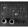 5. Grappes de Pièces : La maquette est livrée avec plusieurs grappes de pièces en plastique, chacune étant destinée à une partie spécifique de l'avion. Ces pièces sont généralement pré-colorées, ce qui signifie que certaines parties auront déjà leur couleur appropriée.