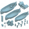 La boîte contient une impressionnante variété de pièces : 163 pièces en métal, un pont imitant le bois, 25 pièces en résine, 6 plaques de photo découpe et des décalcomanies.